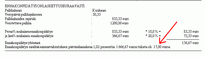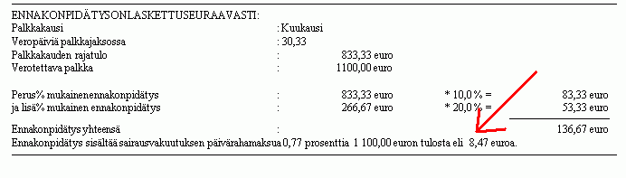 ennakonpidätyksen yhteydessä sairausvakuutuksen päivärahamaksua.Miten