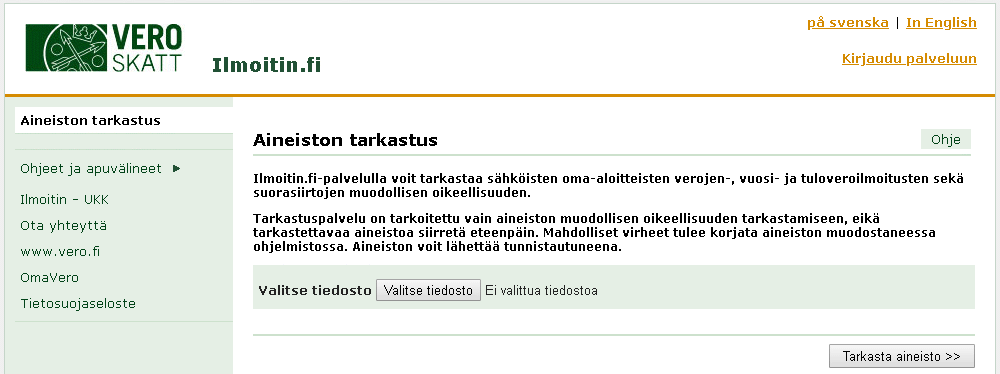 Varsinkin alkuvaiheessa ilmoitustiedostot on hyvä tarkistaa ilmoittimen aineiston tarkastus -palvelussa.