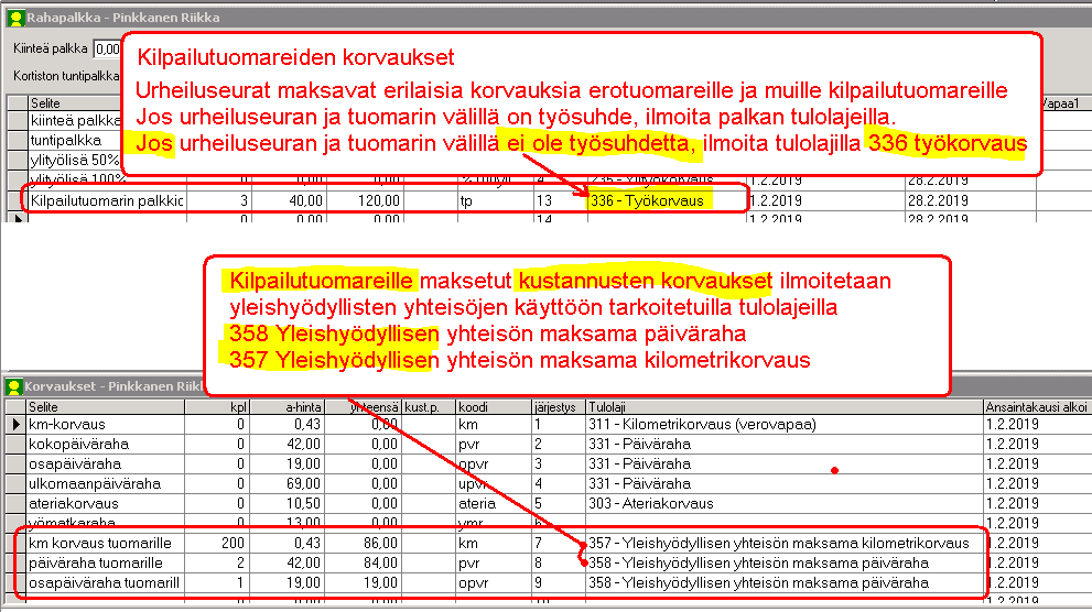 Korvauksettomaan vapaaehtoistyöhön osallistuville tuomareille maksetut kustannusten korvaukset ilmoitetaan yleishyödyllisten yhteisöjen käyttöön tarkoitetuilla tulolajeilla