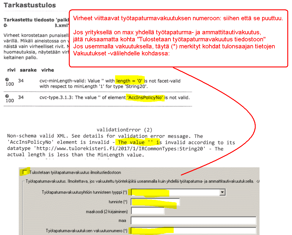 Lataa käsittelypalaute ja etsi XML tiedostosta ErrorMessage jälkeen, mitä tulorekisteri ilmoitti virheen syyksi