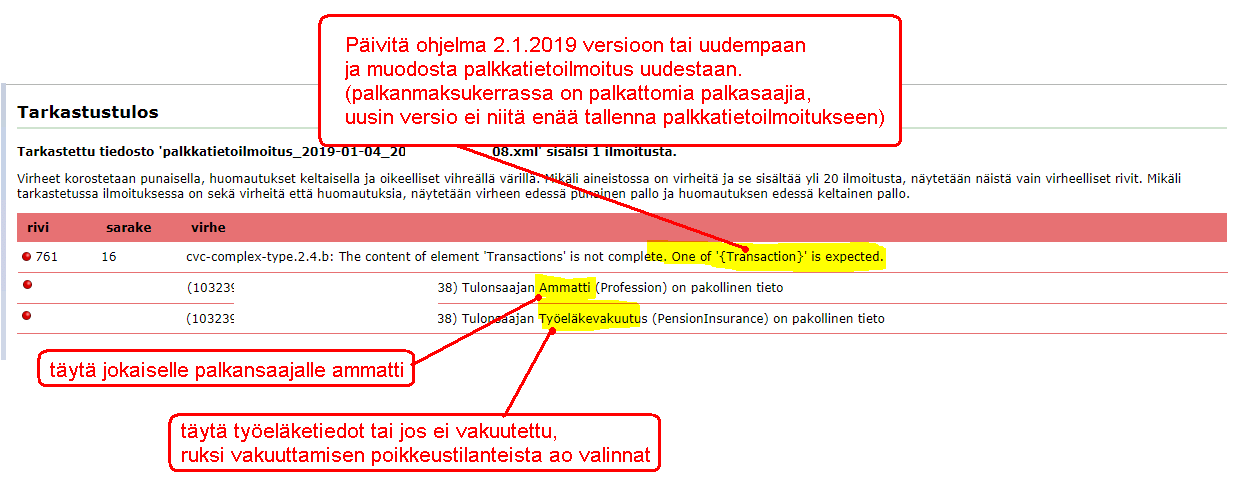 Ilmoituksen palkkatiedot on tärkeä käydä läpi joka palkansaajan kohdalla, että tuli ilmoitettua kaikki tarpeellinen
